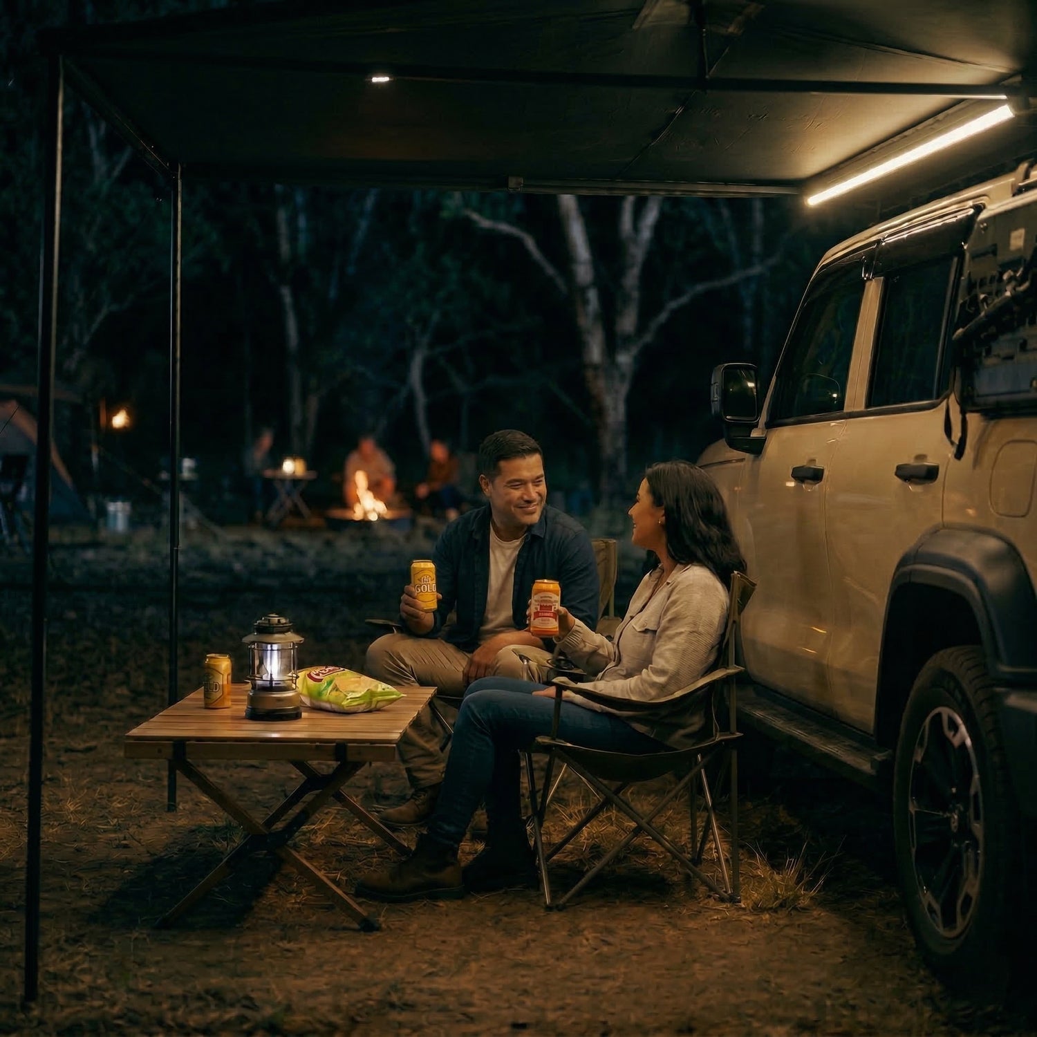 Whether you're prepping a gourmet camp dinner or unwinding after sunset, our integrated LED light strips provide the perfect ambient glow in under 5 seconds—no extra lanterns required.